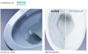 防汚機能従来陶器では防げなかった水アカの固着を、化学的に防ぐ「アクアセラミック」は、日頃のお手入れで水アカを落とし、いつでもキレイを保てます。