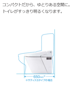 コンパクトデザイン従来便器に比べて奥行きサイズが140mmも短くなりました。空間を広々と使うことが出来ます。
