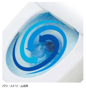パワーストリーム洗浄強力な水流が便器鉢内のすみずみまで回り、少ない水でもしっかり汚れを洗い流します。