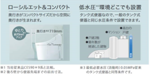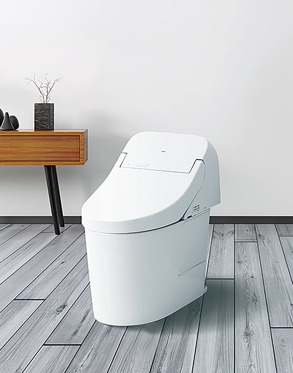 ワンプッシュでウォシュレットの前方が持ち上がる便利なリフト機構。本体と便器部の間をラクにお掃除できます。
