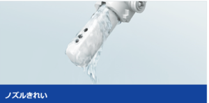 「きれい除菌水」でノズルの内側も外側も自動で洗浄・除菌。使用していない時も定期的に洗浄します。