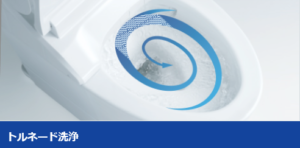 渦を巻くようなトルネード洗浄が、少ない水で、汚れをしっかり洗い流します。
