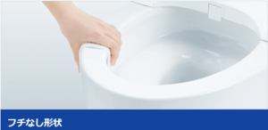汚れが見えにくく、たまりやすいフチ裏をなくした便器形状。お掃除はサッとひとふきで完了です。