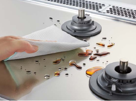 親水アクアコート水を浸しておくと汚れが浮き上がり、こびりついた汚れも落としやすくなります。