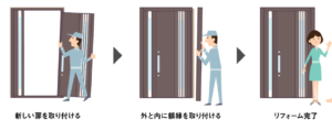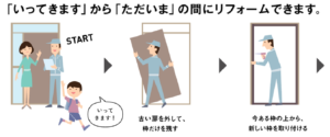 1日で施工壁を壊す一般的な玄関リフォームの場合、5日かかることもありますが、リシェントなら壁を壊さず1日で完了します。